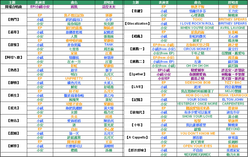 圖片說明:該次唱歌定的主題與演唱歌單