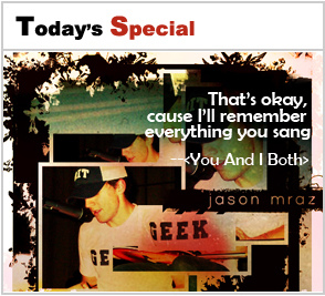 很喜歡西洋樂壇中三位名字縮寫都是JM的男歌手,除了Jason Mraz外,另兩位是John Mayer跟Jon McLaughlin。他們都不需要太複雜的編制襯托,一把吉他,就可以奏出讓人感動的弦音,一張口就讓人沉溺在音樂的飽滿情緒中。