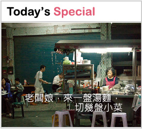 巷口似乎都有這麼一處地方,接近傍晚才開始擺攤營業,愈晚人聲愈沸,冒著煙的攤子,聚著一桌桌的人來這裡,邊吃晚餐或消夜邊聊著天,這是大家都熟悉的麵攤。