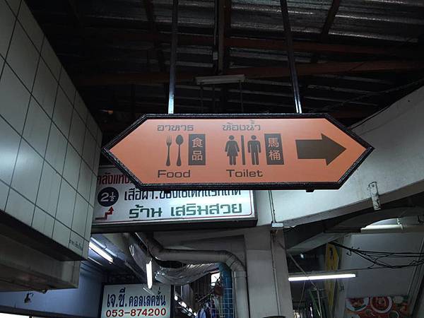 逛瓦洛洛市場(Warorot Market)也是不停遇到中國遊客,在找洗手間時看到這個指引牌,把Toilet翻成馬桶也不能說它錯啦!但就是太直接啦!你不知道我們最給掰了,Toilet一定要故作文雅地說是洗手間或盥洗室,連要去解放大小便都還要假裝是洗個手、整理一下儀容似的。