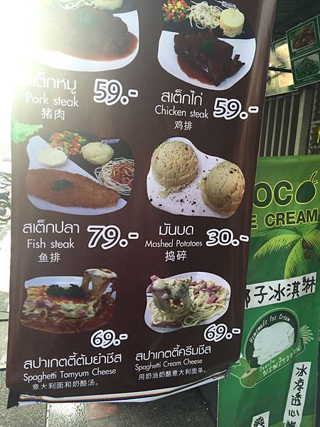 許多人都是從電影開始認識泰國,李奧納多主演的電影《海灘》帶動曼谷考山路成為背包客天堂,一度成為中國電影史上票房收入最高的華語電影《人再囧途之泰囧》則讓中國觀光團大舉入侵清邁。雖然清邁也是泰國人渡假的熱門景點,但我在這6天中不管走到哪都會聽到中文,有種中國觀光客人數比當地人還多的錯覺。許多店家為了招攬更多生意上門,招牌或菜單都會貼心地附上中文,但應該多為求助Google翻譯的,常會有讓人啼笑皆非的翻譯出現。分享幾個我在清邁流浪時看到的有趣中文翻譯,原意大走鐘讓我笑到美丁美當。