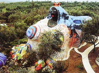 在與丁格利維持15年的朋友關係後,妮基終於與她生命中最愛的男人訂下終身。我很欽佩妮基的勇氣,當初她與丁格利必定是拋開眾人的冷嘲熱諷與閒言閒語才能結合在一起。感情這種事相當難說,所託非人的狀況時有耳聞,若雙方能達成共識和平落幕倒是值得可喜可賀,但往往這類型的下場都是落得反目成仇。妮基與丁格利不僅在感情路上相扶持,在藝術創作上更是密不可分。丁格利稱得上是妮基的最佳觀眾,對妮基寵愛有加,不僅她所有天馬行空的想法全都百分百支持,也以自己所長去幫助妮基實現夢想。丁格利擅長機械裝置,妮基則以大膽鮮豔的用色與誇張的造型,柔化了機械的嚴肅,相輔相成。妮基對丁格利的愛戀與崇拜,則從作品中可窺之一二。